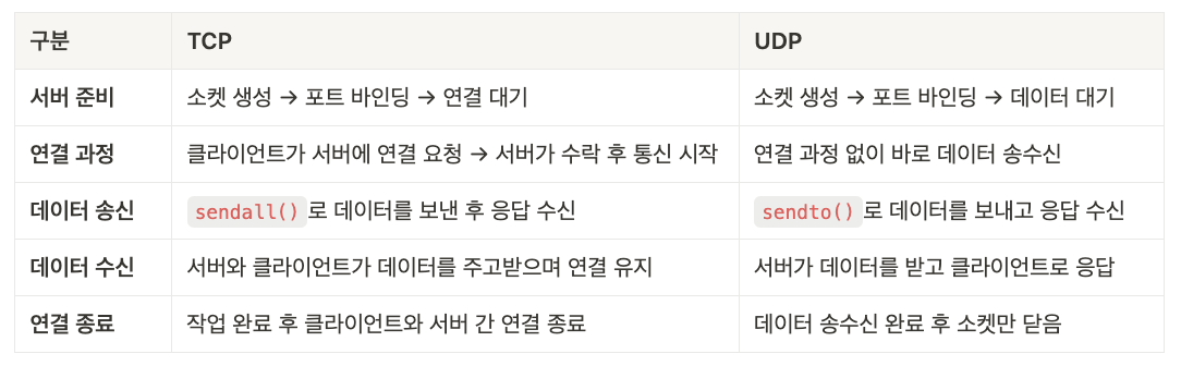 - 서버는 recvfrom()으로 클라이언트 데이터를 수신