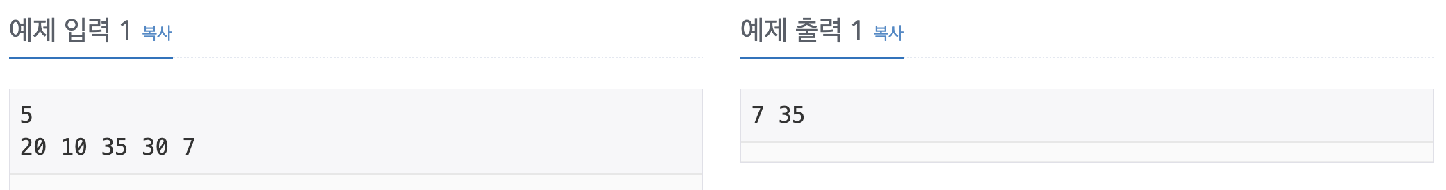 2. 두 번째 줄 "20 10 35 30 7" 통째로 읽기