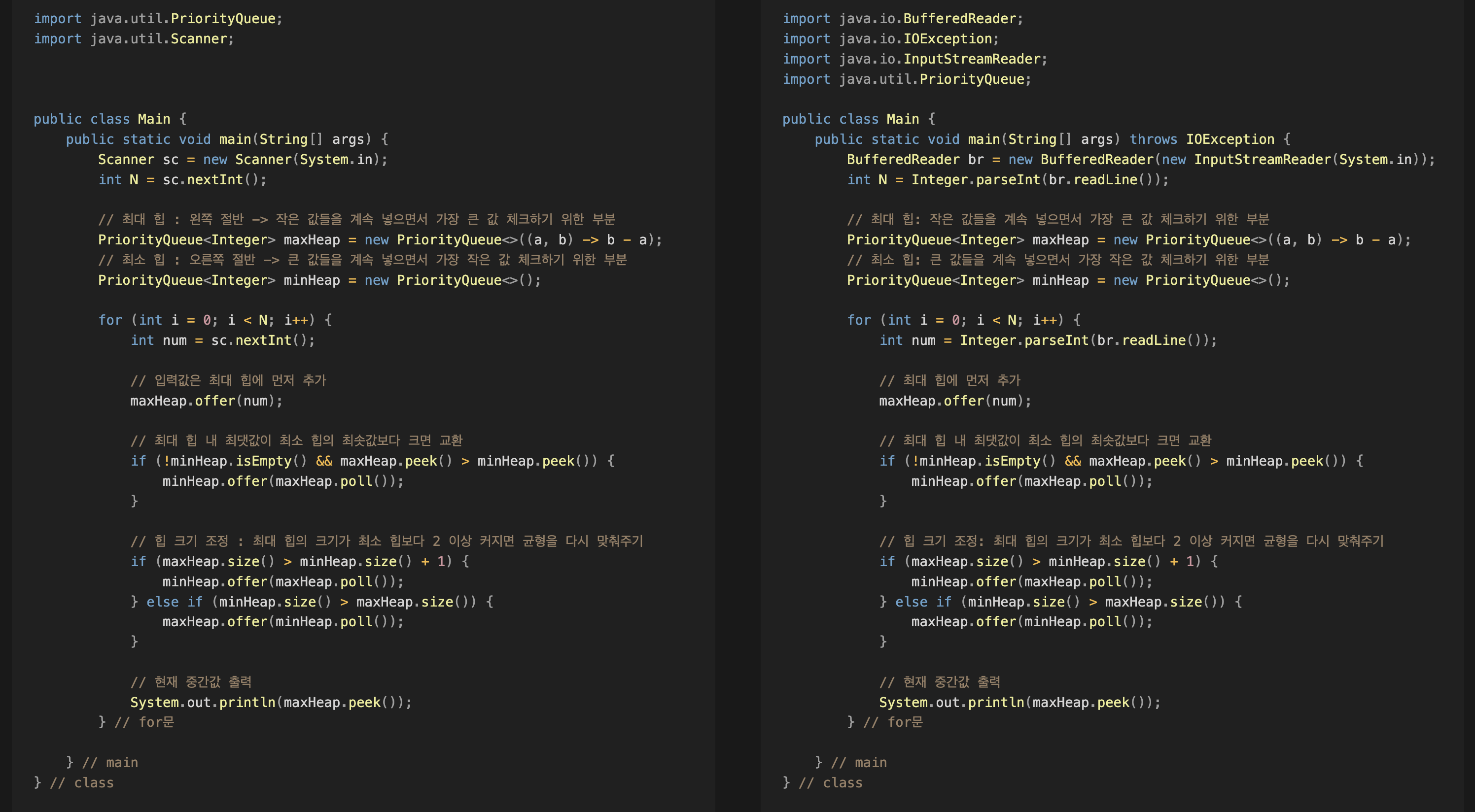 | 입력 단위 | 공백(next()) / 줄(nextLine()) | 줄 단위(readLine()) |
